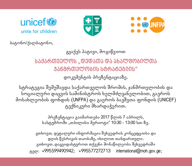 | To : | Mariana Mkurnali <mmkurnali@moh.gov.ge>; Maia Nikoleishvili <mnikoleishvili@moh.gov.ge>; Tamar Beridze <tberidze@moh.gov.ge> |