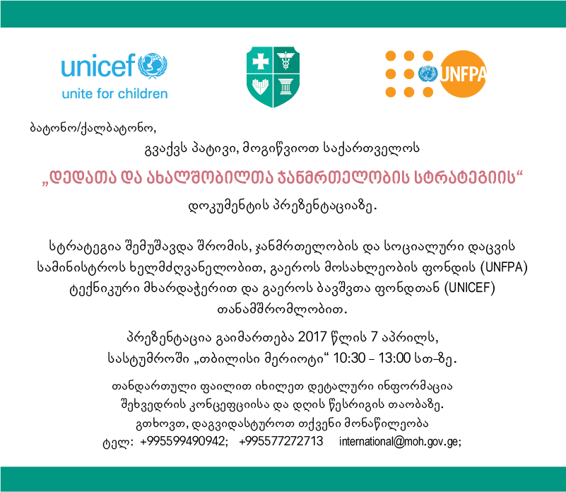 Cc: 'Mariana Mkurnali' <mmkurnali@moh.gov.ge>; 'Lela Bakradze' <bakradze@unfpa.org>; 'Anna Tskitishvili' <tskitishvili@unfpa.org>