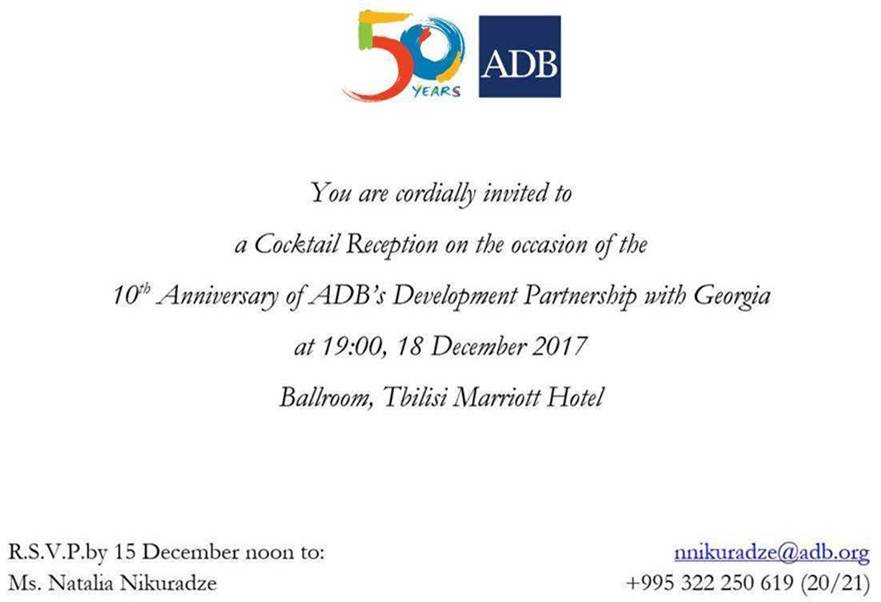 Sent on behalf of Yesim Elhan-Kayalar, Country Director and Resident Representative of the Asian Development Bank in Georgia