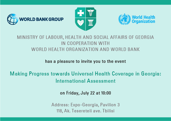 მოგესალმებით, გიწვევთ ღონისძიებაზე "საყოველთაო ჯანდაცვის პროგრამის პროგრესი და საერთაშორისო შეფასება" 11:00 საათზე საგამოფენო ცენტრ "ექსპო-ჯორჯიას" მესამე პავილიონში. პატივისცემით, ნინო ტალახაძე