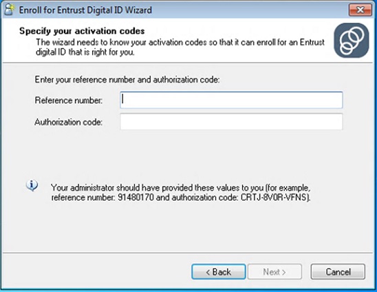 4. Enter your Reference Number from Step 1 and your Authorization Code from Step 2 and press Next.