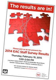 Over the last several months, your EAC has been hard at work reviewing the results of the 2014 staff survey, responding to employee and management requests, and preparing to welcome new representatives. We’re happy to share the following updates with you. As always, if you have any questions please contact us!