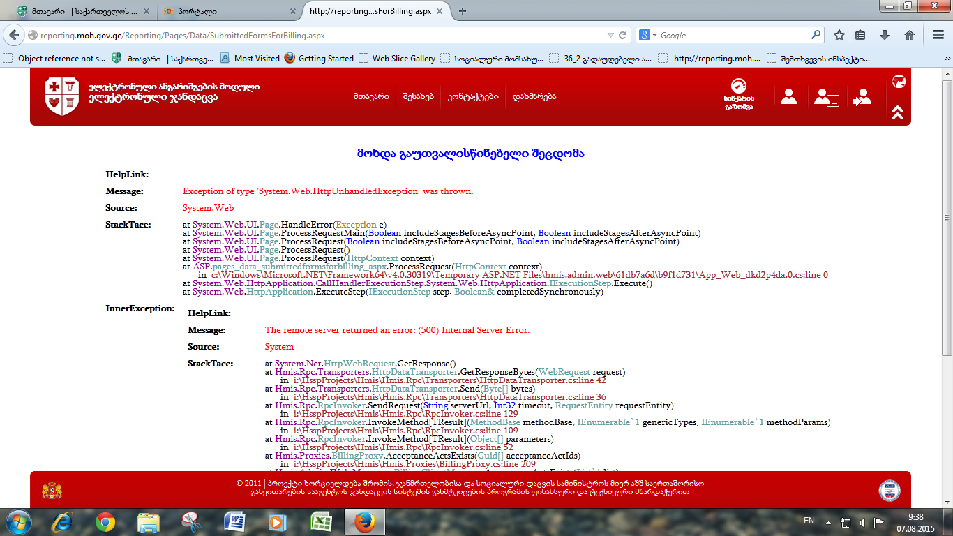 ერორია ვერ შევდივართ რეპორტინგში.