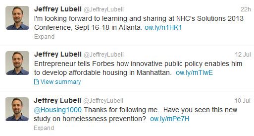 Jeffrey Lubell is Director of Housing Initiatives at Abt Associates and a nationally recognized authority in housing and community development. In addition to writing several blogs including, “The Home Front,” Lubell is active on Twitter. On his account, @JeffreyLubell, he tweets about his research as well as housing policies and programs in the U.S.. Check it out! Let’s Connect Social Media offers many options for staying apprised of – and engaged in – news and activities at Abt Associates. If you have any questions about how to participate, we’re here to help. Please contact us at Corporate_Communications@AbtAssoc.com . | ||||||||||||||||||||||||||||||||||||||||||
