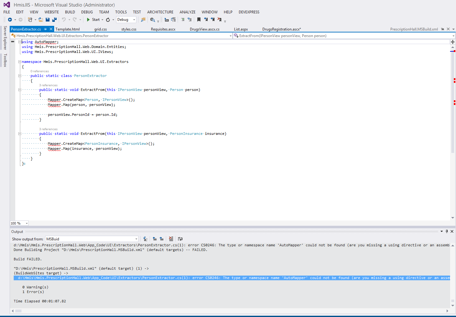 განვაახლე მთელი სოლუშენი, MS Bild იც გავუშვი და მაინც ერორია, იქნებ დაქომითებული არ გაქვს?