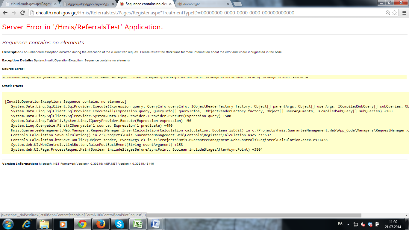 კალკულაციის გვერდზე უარყოფა გავაკეთე მოთხოვნის და დამიწერა ,რომ პასუხისმგებელი პირი მიუთითეო ეს სწორად გააკეთა, შემდეგ ეგრევე დავაჭირე ხელი შენახვას და გამოდის ერორი-2