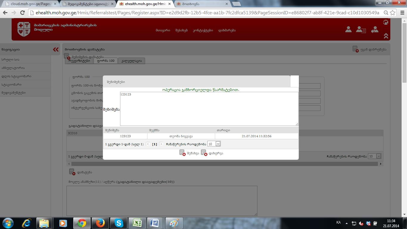 ფორმა 100-ზე შენიშვნის დამატება მინდა და   შენახვას არ მაკეთებინებს- იხილეთ ბმული-1