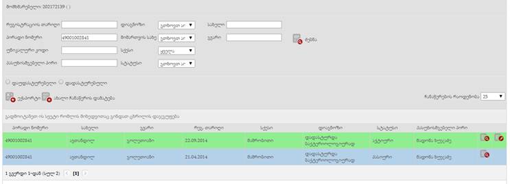 62006008999 - პირად ნომერზე არის ერთი პასიური შემთხვევა და ერთი აქტიური შემთხვევა, დარეგისტრირებული 2014-06-10 12:07:55 თარიღში