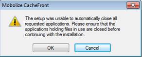 4. Next, Mobolize may or may not offer this prompt, telling you that some applications must be closed. Save any open data before clicking OK.