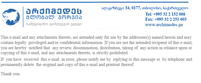 | From : | Nino Merabishvili <nmerabishvili@archimedes.ge> |