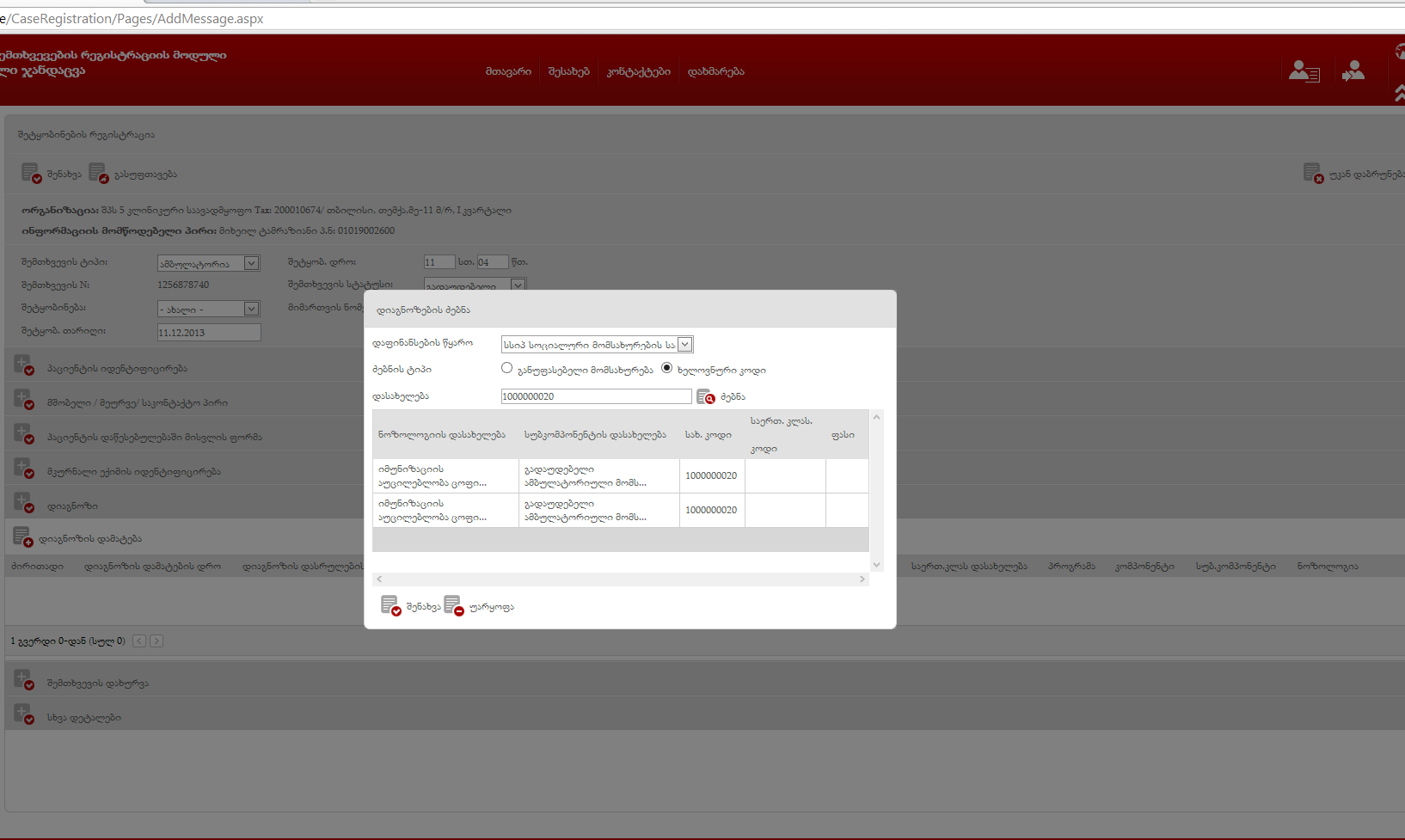 ამბობს, რომ დიაგნოზის დამატებსას ხელოვნური კოდის საძიებო ველში კოდი 1000000020 ჩაწერისას უწერს რომ აღნიშნული ფინანსური ერთეული ვერ მოიძებნაო.