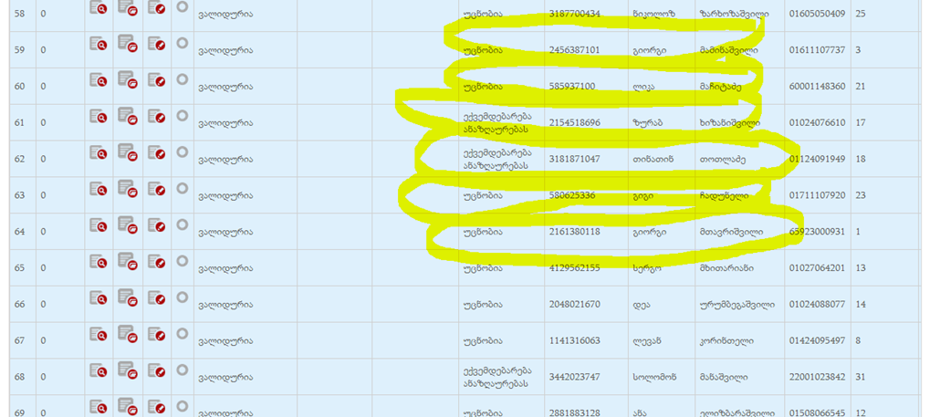 მანჩოოო, რა ხდება იცი? შემთხვევაში მოაქვს სხვისი ხელოვნური კოდი ბენეფიციარი იგივეა და ხელოვნური კოდი სხვა, ანუ მოწოდებულ ,ამობეჭდილ კალკულაციაში უწერიათ ხელვნური კოდი და ელ/ვერსიაში სხვა კოდია :) გიგზავნი შემთხვევის ნომერს 2456387101 გიორგი მამინაშვილი, ელ/ვერისში II დონის ქირურგიაა და ჩემს ხელთარსებულ კალკულაციაში I დონის ტრავმატოლოგია. ესეთი შემხვდა ეხლა რამოდენიმე ზედიზედ . იაშვილის 36-ე დადგენილება, გად.ამბულატორია, საბაზისო პაკეტი. http://reporting.moh.gov.ge/Stationaryform/Default.aspx?formID=aa04d708-b325-40cb-87c2-d21973e424b0&gridId=ebccb66e-5f7d-49a2-9bb7-bc49a72eb42c&detailsFormID=431c5a66-3278-48a0-96a8-58280a9210ca&loginToken=fb048324-30aa-4e41-985d-fa1f2cd01346&contractID=8789d808-c4c7-4c68-8eb4-e05c07e09190&SubmitionKeyId=de860e70-01e1-4897-b847-1692ab10d4b6&keyColumnValue=2ab28932-5801-4596-872a-dbbe67da5ec9&isEdit=True&providerID=e96b2a1f-6f0b-418c-9e85-f9240a8185ad#