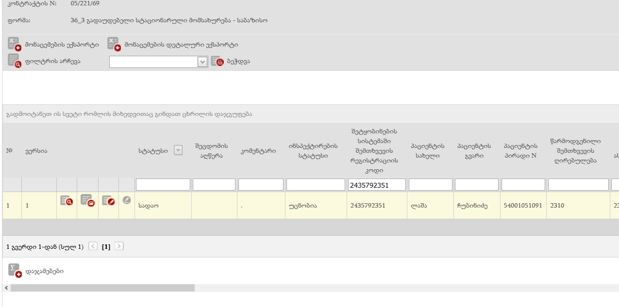 ჩვენი თანამშრომელი შესრულების (შესრულების # 2249680757) დამუშავებისას ცდილობს შემთხვევას (მაგ: შ/ნ 2435792351) შეუცვალოს სტატუსი. სტატუსს რომ ცვლის და აკეთებს შენახვას პროგრამა ტრიალებს არ ანახვინებს სტატუსს. თუ შეიძლება რომ ნახოთ აღნიშნული ხარვეზი.