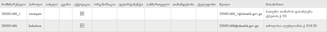 თქვენს მიერ მოწოდებული ინფორმაციით მომხმარებელი - შპს ვია ვიტა  / 205001406 ანგარიშგების მოდულში არსებული მომხმარებელია და წვდომა უკვე ჰქონდათ ამ მოდულში. როგორც დაწესებულება ამბობს, ვერ ახერხებს მოდულში შესვლას ვერც ძველი პაროლით და ვერც resetpass -ით.