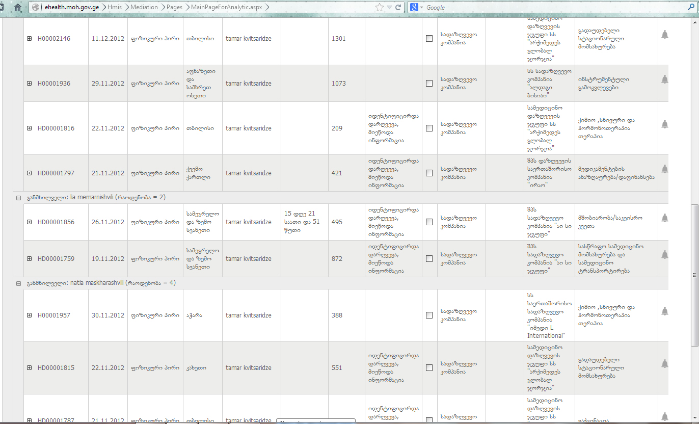 3.  როდესაც ვარეგისტრირებთ იურიდიული პირის მიერ დაფიქსირებულ განაცხადს, მოგეხსენებათ საჭიროა Tax Code, მზღვეველი ორგანიზაციების კოდები ჩვენთვის ცნობილია (იხილეთ დანდართული ფაილი), იქნებ სადმე Droplist-ის სახით ან რაიმე სხვა ხერხით დავამატოთ ეს ინფორმაცია.
