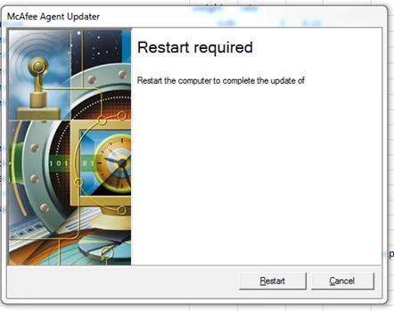 You will see the following window pop-up. If you are ready to reboot, please click Restart. If you would prefer to reboot later, please click Cancel and reboot at your earliest convenience.