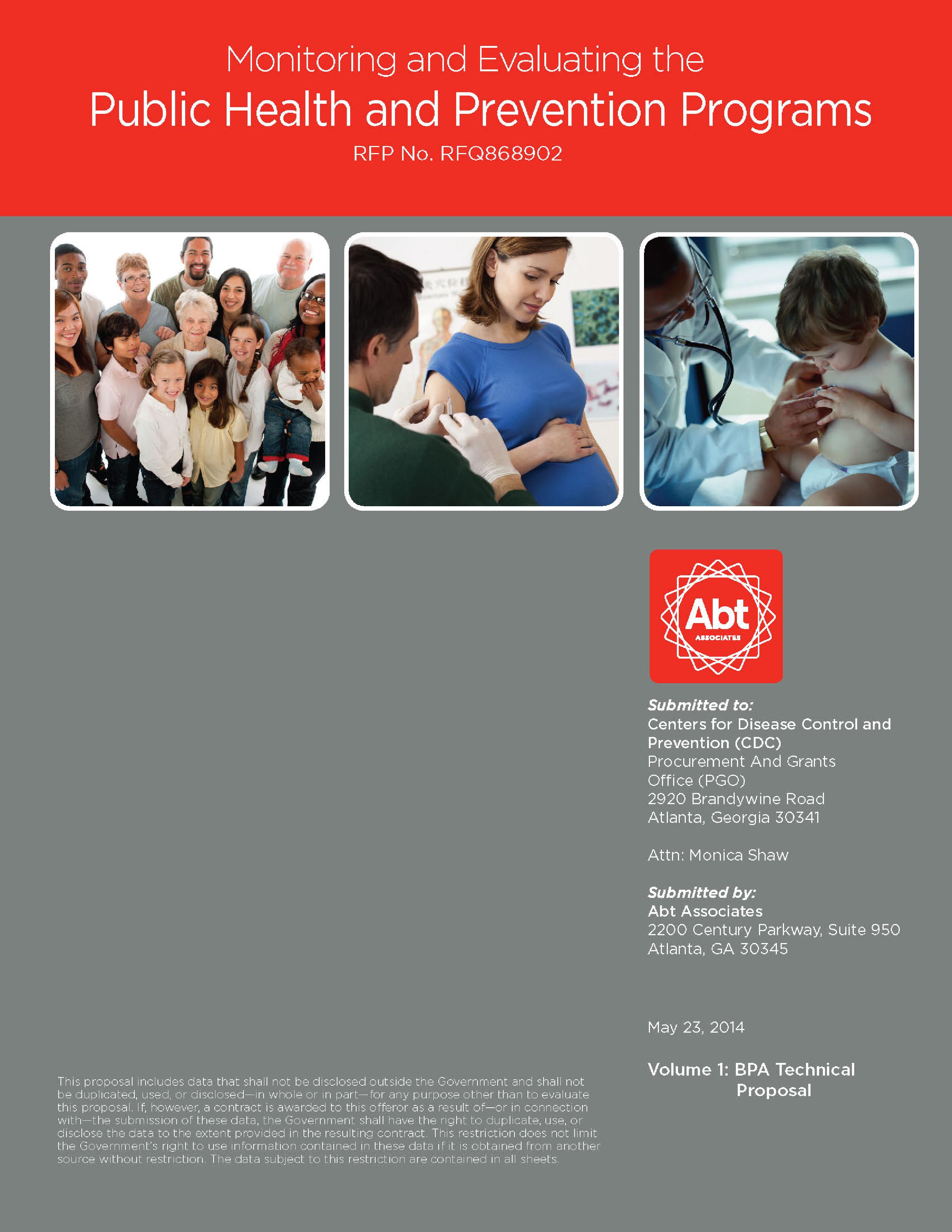 The Abt capture lead was Sarah Ball, the technical team included Sarah Ball, Sara Donahue and Danielle Hunt (technical leads for the BPA and task orders), Matt Allain (GBDU proposal manager), Eddie Chen and Courtney Long (FCAs), and additional writers/contributors included SRBI’s Heather Hammer, Dianne Rucinski, Charles DiSogra, and John Sokolowski.