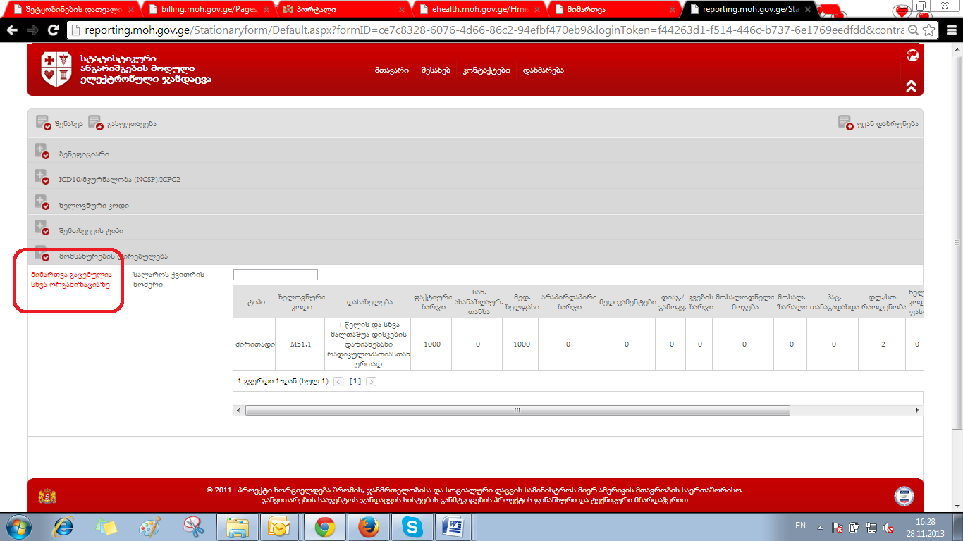 კლინიკა (ს/კ202901832) შემთხვევას არეგისტრირებს ანგარიშგების მოდულში და განფასების დაჯამების შემდეგ უწერს მიმართვა გაცემულია სხვა ორგანიზაციაზეო. გადაამოწმე რა.