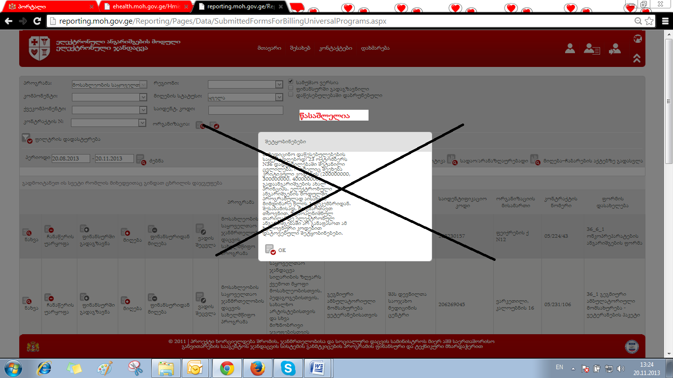 23 ოქტომბერს N36 დადგენილებაში შეტანილი ცვლილება, რომელიც შეეხება კრიტიკული კოდების (200000000, 300000000, 400000000) გადაანგარიშგების ახალ პრინციპს და გადაუდებელ თერაპიულ სტაციონარულ მომსახურებაში  დამტებული ახალი ხელოვნური კოდების 9000000001- 9000000015 დათვლის პრინციპს  ელექტრონული ანგარიშგების მოდულში პროგრამულად აისახება მიმდინარე წლის 1 დეკემბრიდან. შესაბამისად, მოგმართავთ თხოვნით, ზემოაღნიშნულ თარიღამდე ელექტრონულ ანგარიშგებაში არ განაფასოთ ამ ხელოვნური კოდებით დატოვებული შეტყობინებები.