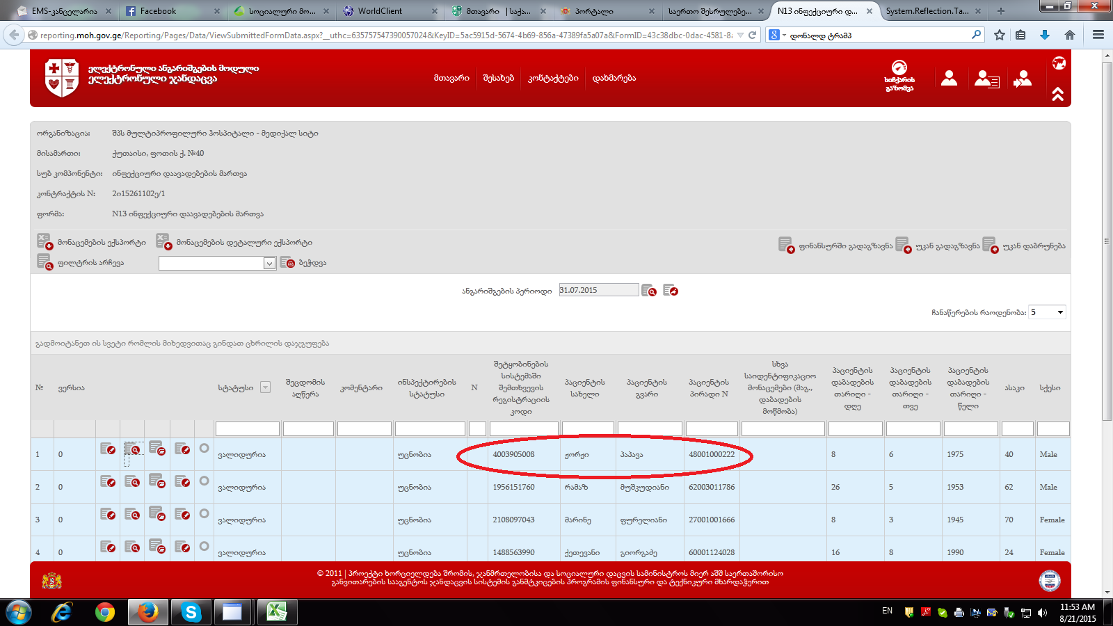 დაწესებულებები რომელთაც შევსებული აქვთ პერინატალური ფორმა.xlsx