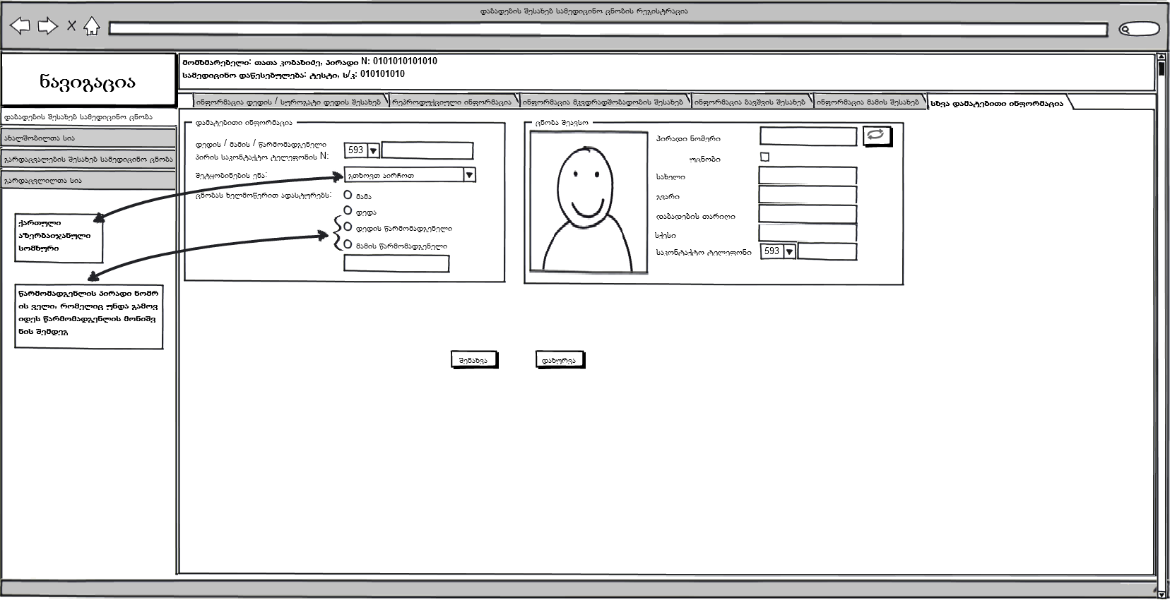 - არასამედიცინო დაწესებულებების მიერ შევსებული ცნობების გადმოგზავნის მიზნით შესაქმნელი მონაცემთა ბაზის სტრუქტურა, ლოგიკები და ა.შ).