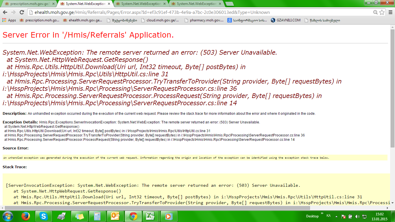 ცოტა ხნის წინა, როცა ეგ ერორი გამოვიდა სერვერზე მიმდინარეობდა განახლებები, რის გამოც ყველა მოდულში 2 წუთით იყო შეფერხება.