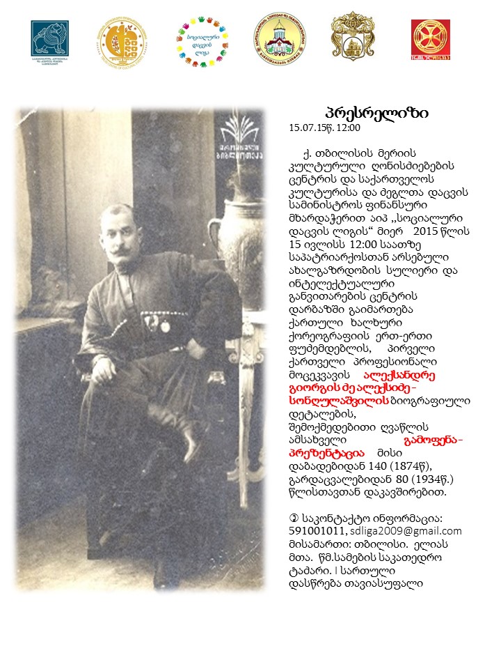 ქ. თბილისის მერიის კულტურული ღáƒáƒœáƒ˜áƒ¡áƒ«áƒ˜áƒ”ბების ცენტრის დრსáƒáƒ¥áƒáƒ თველáƒáƒ¡ კულტურისრდრძეგლთრდáƒáƒªáƒ•ის სáƒáƒ›áƒ˜áƒœáƒ˜áƒ¡áƒ¢áƒ áƒáƒ¡ ფინáƒáƒœáƒ¡áƒ£áƒ ი მხáƒáƒ დáƒáƒáƒ”რით áƒáƒ˜áƒž ,,სáƒáƒªáƒ˜áƒáƒšáƒ£áƒ ი დáƒáƒªáƒ•ის ლიგის“ მიერ  2015 წლის 15 ივლისს 12:00 სáƒáƒáƒ—ზე სáƒáƒžáƒáƒ¢áƒ იáƒáƒ ქáƒáƒ¡áƒ—áƒáƒœ áƒáƒ სებული áƒáƒ®áƒáƒšáƒ’áƒáƒ–რდáƒáƒ‘ის სულიერი დრინტელექტუáƒáƒšáƒ£áƒ ი გáƒáƒœáƒ•ითáƒáƒ ების ცენტრის დáƒáƒ ბáƒáƒ–ში გáƒáƒ˜áƒ›áƒáƒ თებáƒ