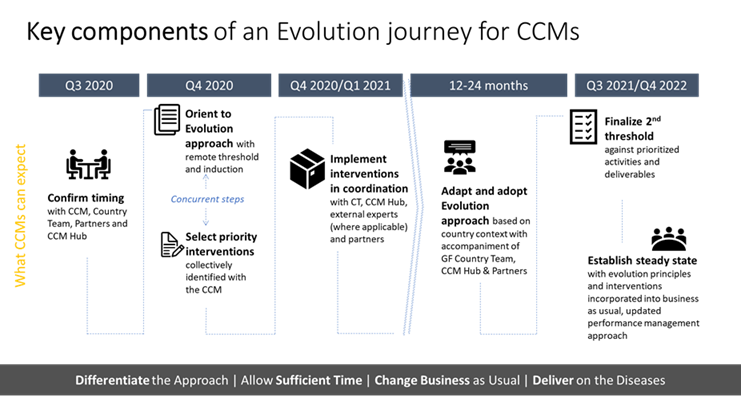 CCM Evolution is a collaborative process aimed at working closely with your CCM to collectively identify opportunities for improving core CCM responsibilities and investing in results for strengthened health governance. Additional information is included below.