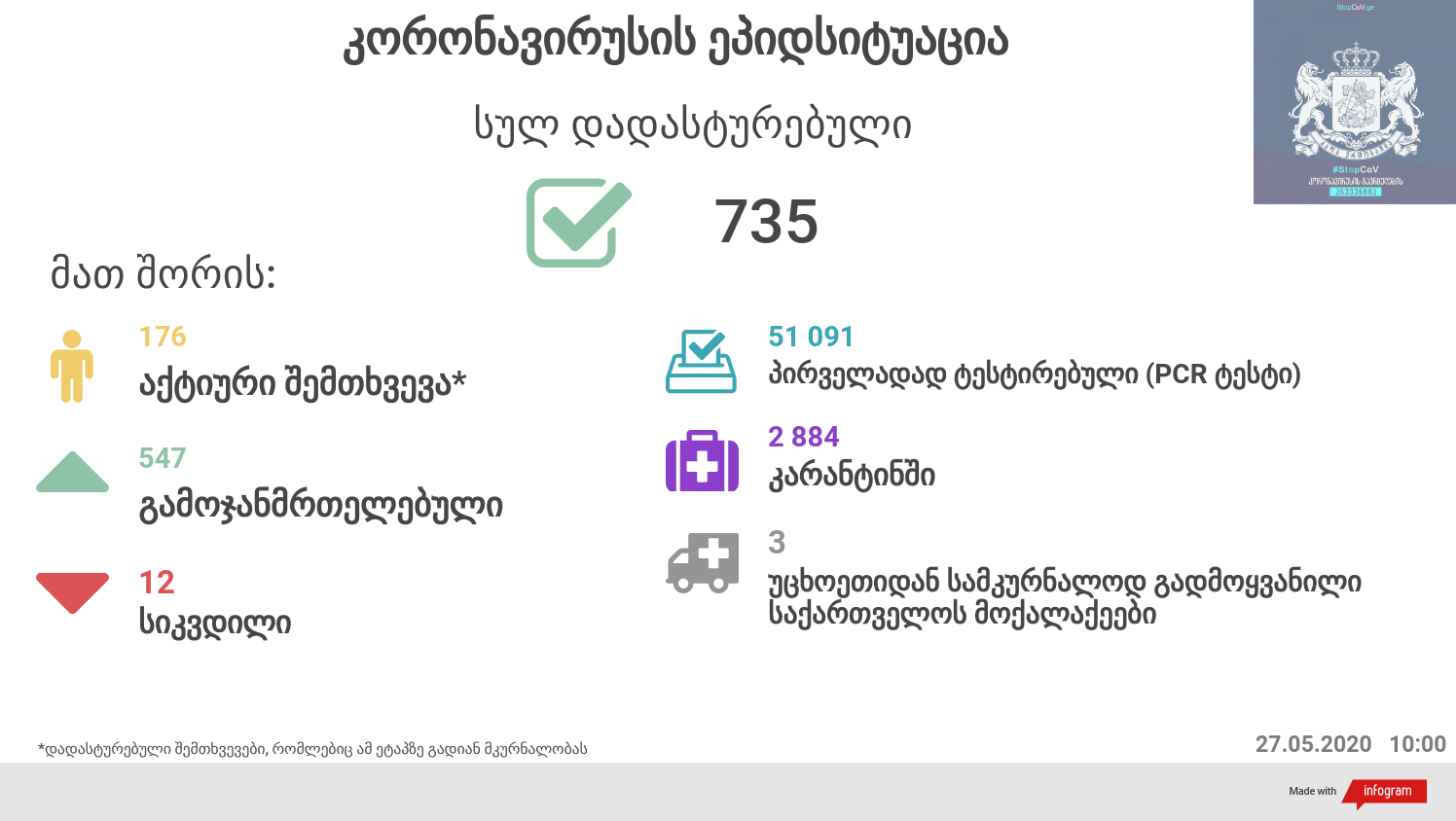 შემთხვევა. აქტიური შემთხვევა (რომელიც გადის ამ ეტაპზე მკურნალობას) 176.