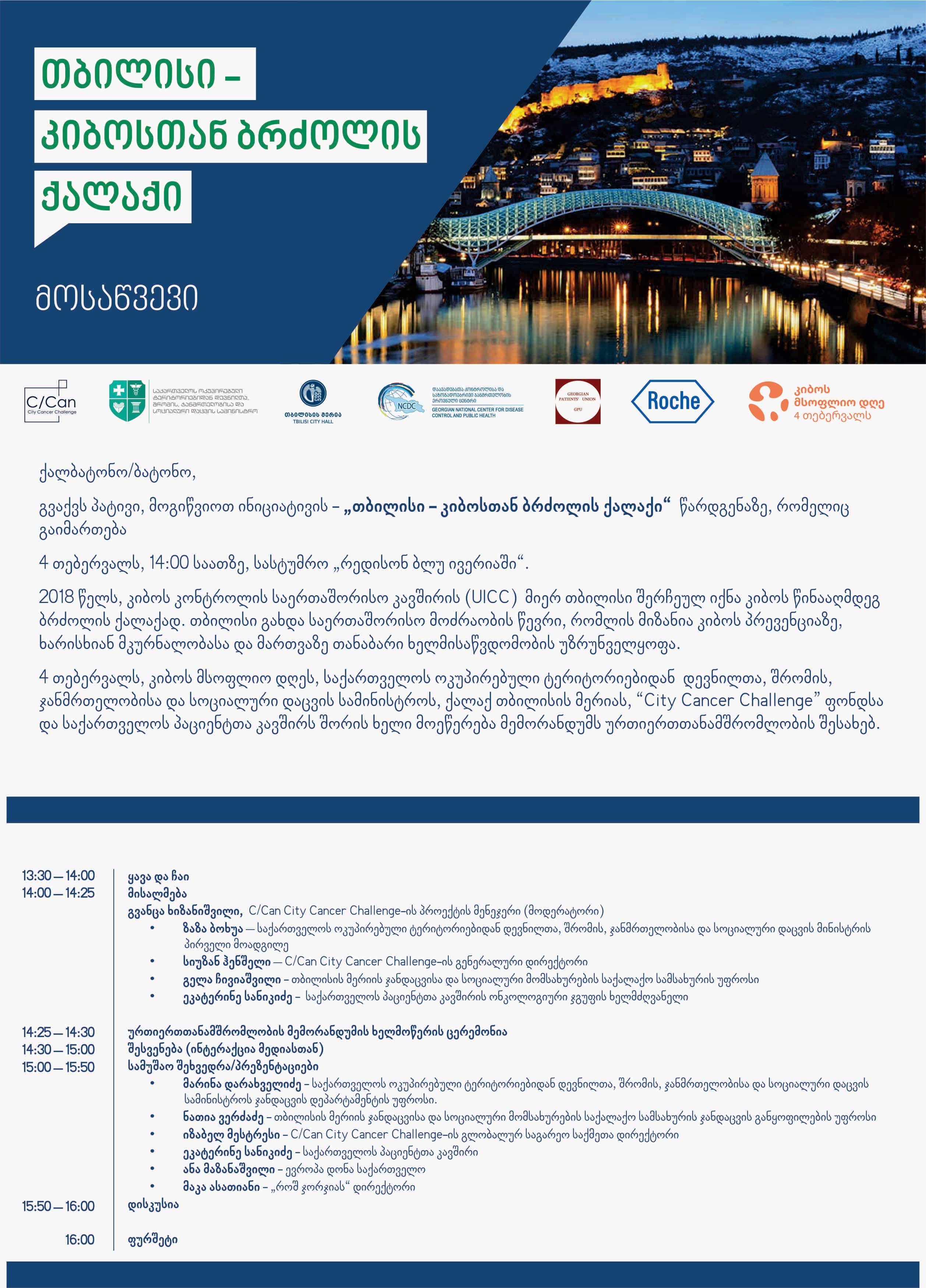 გიგზავნით 4 თებერვლის ღონისძიების დიკუმენტების საბოლოო ვერსიებს.  გთხოვთ გადახედოთ და მოგვწეროთ თუ რამე საბოლოო შესწორება გაქვთ დღეს 15:00 საათამდე.