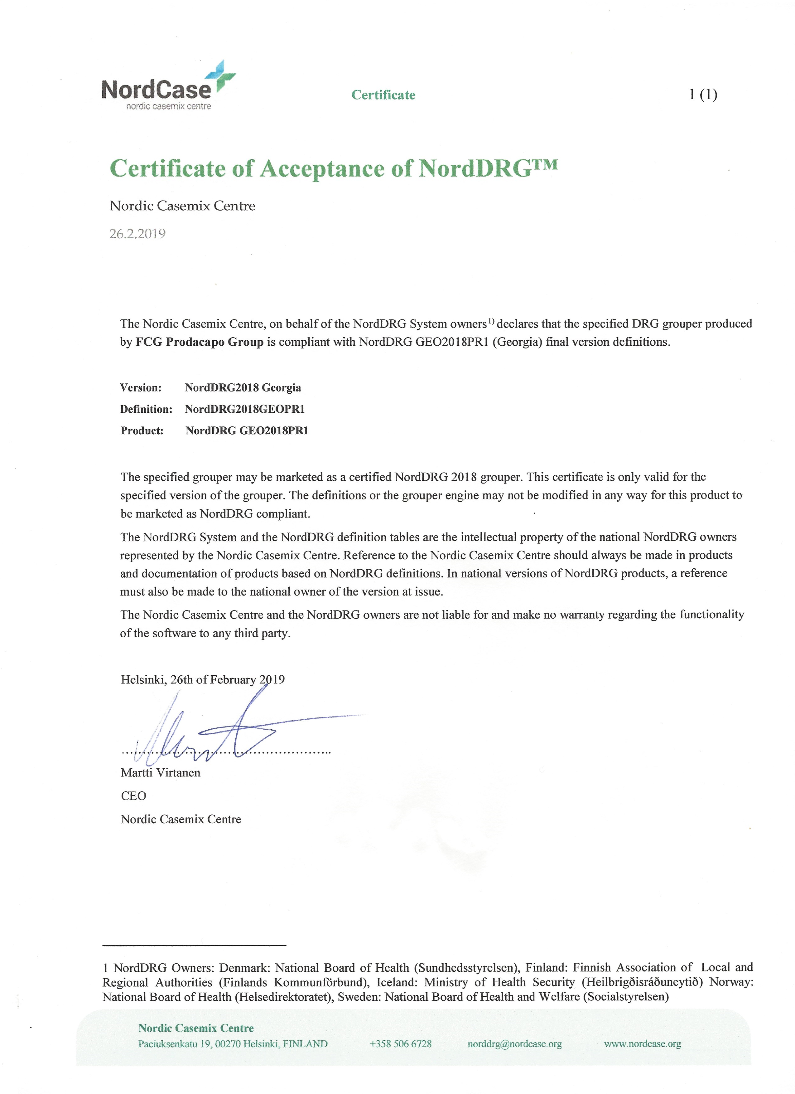 Subject: RFC: Certification of GEO version of NordDRG by NCC ?
