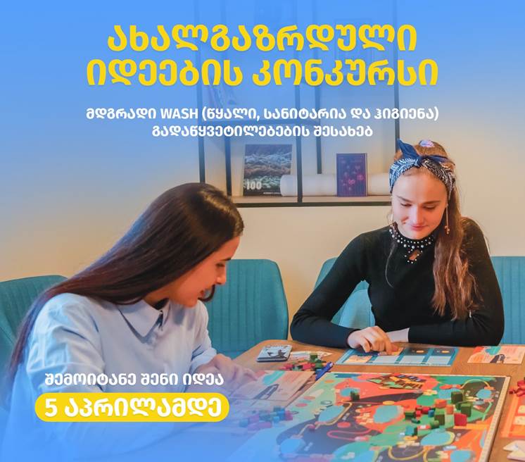 CENN ევროკავშირის, Global Water Challenge-ისა და კოკა-კოლას ფონდის (TCCF) ფინანსური მხარდაჭერით აცხადებს იდეების კონკურსს „მდგრადი WASH გადაწყვეტილებების შესახებ“ საქართველოს საჯარო და კერძო სკოლების ახალგაზრდებისთვის, შემდეგ მიმართულებებზე: