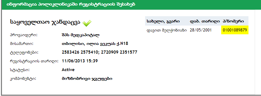 პირად ნომერთან ერთად. დაბრუნებული შედეგი იგივე ტიპის არის რაც იყო აქამდე.