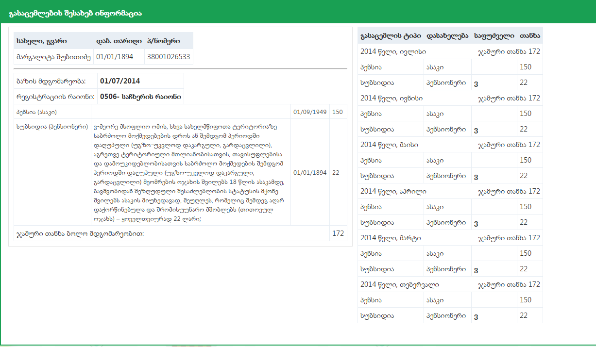 მაკა, რაც შეეხება სახელმწიფო გასაცემლის ინფორმაციას, რასაც ვიძლევით ვიზუალურად ასე გამოიყურება