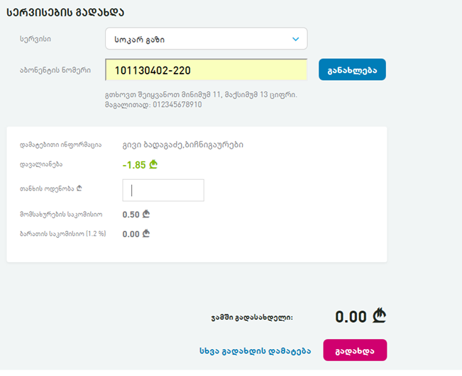 აბონენტის ნომერი, რითაც გადახდაა შესაძლებელი TBCPAY-დან 101130402-220 (ანუ როგორც ვისაუბრეთ ძველი ნომერით)
