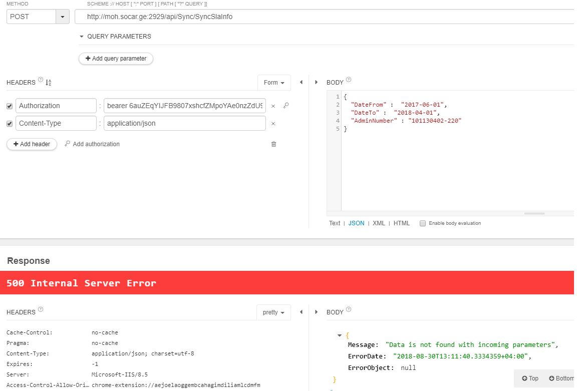 500 Internal Server Error,